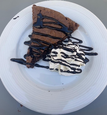 Nachspeise und einen Kaffee spendiert. So hat unser Mittagessen 2,5 Stunden