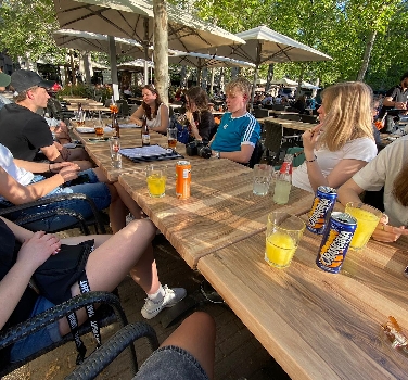 Das schön gelegene Restaurant am Place Pie war einen Besuch wert. Dort gibt es eine große Auswahl an antialkoholischen sowie alkoholischen Getränken, z.b. Cidre, Aperol… Außerdem gab es dort auch Pizzen, die jedem gut schmeckten außer mir. Die Preise lagen zwischen 11.50€-16.00€. Gegen die Abendstimmung am Platz lässt sich aber nichts einwenden.