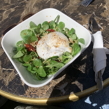 Hier kommen wir (meiner Meinung nach) zum Highlight unserer kulinarischen Besuche. Das Gaudineto ist ein schickes, authentisches Restaurant mit einer wunderschönen Terrasse neben einem kleinen Bach mit schöner Aussicht auf Moustiers. Wir wählen verschiedene Speisen: Selbstgemachter flambierter Ziegenkäse aus der Gegend mit Kräutern, Bratkartoffeln, frischem Schinken & Salat. Extrem lecker sind der milde Ziegenkäse und die knusprigen Kartoffeln. Beim Lachsrisotto sind die Meinungen geteilt, die einen finden es sehr lecker, die anderen finden das Preis-Leistungs-Verhältnis nicht richtig. Das Entrecôte fand Niko persönlich zu fettig. Herr Sepper aß einen Pulled Pork Burger, welcher ihm sehr gut schmeckte. Da wir alle keine Weinkenner sind, können wir über Rot- & Weißwein wenig sagen außer, dass er einen guten Geschmack hatte (und Anna nach der langen Wanderung in der Verdonschlucht zu Kopf gestiegen ist). Fazit: Das Restaurant ist meiner Meinung nach einen Besuch wert, wenn man schick essen gehen möchte. Die Preise sind ziemlich hoch, Essen und Lage dafür aber auch besonders.